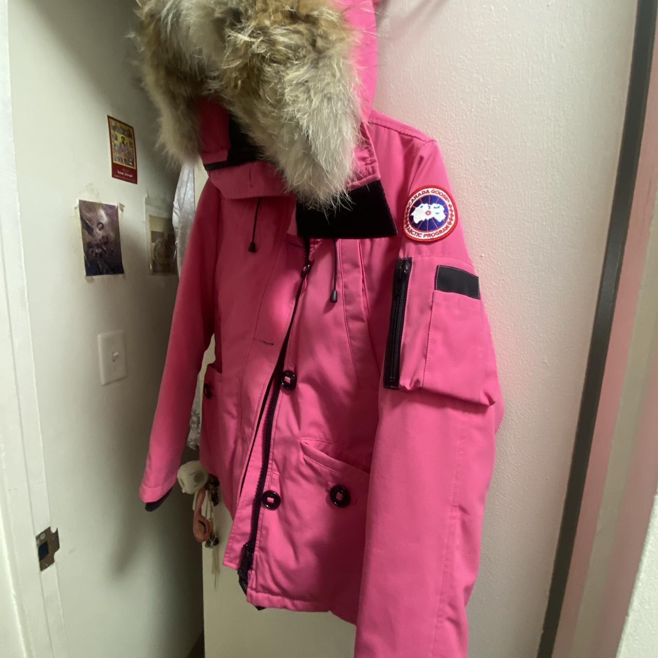 Pink Canada Goose parka with faux fur hood #wintercoats